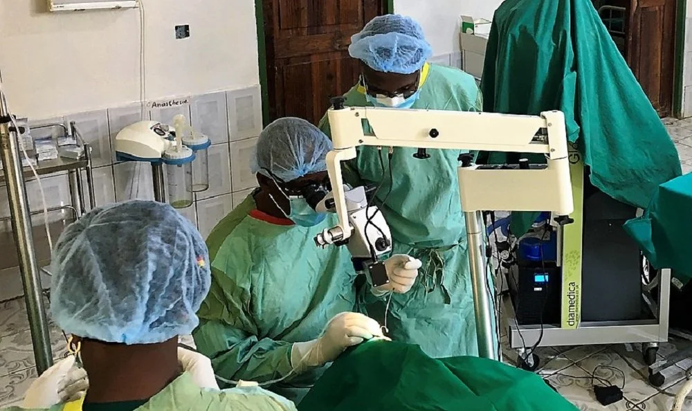 In Mpanda gibt es keine Augenklinik. Jedoch ermöglichte eine logistische Meisterleistung tansanischer Projektbeteiligter die Einrichtung einer provisorischen Klinik in der örtlichen Gemeindehalle. Es wurden auch drei OP-Mikroskope aus umliegenden Regionen herangeschafft, darunter ein portables FLAIR P4, das sich seit Anfang 2016 in Mbeya im Einsatz befindet und quasi als Nachbarschaftshilfe (560km!) zur Verfügung gestellt wurde. Insgesamt konnten so 120 Augen im nahegelegenen Regional Hospital operiert werden.