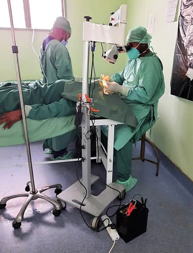 The multi-power capability of the FLAIR microscope enabled a week-long eye operation camp to continue without delay after a blackout in Alkena, West Highlands Province in Papua New Guinea.