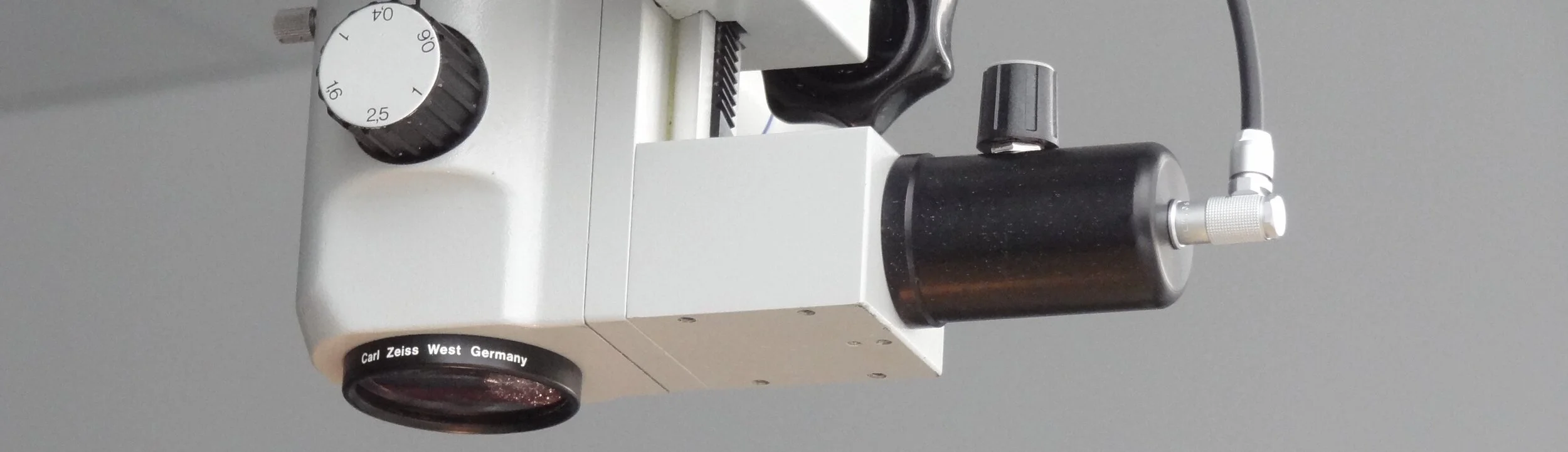 Im ZEISS OPMI 1/9-FC wird eine Halogenbeleuchtung mit einem Lichtleiter verwendet. Diese ersetzen wir mit unserer topaktuellen LED Beleuchtungseinheit SPOT 19-FC.